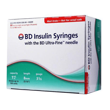 - 90 BD Ultra-Fine II Short Needle Insulin Syringe 31 Gauge x 1cc x 5/16" (8mm)